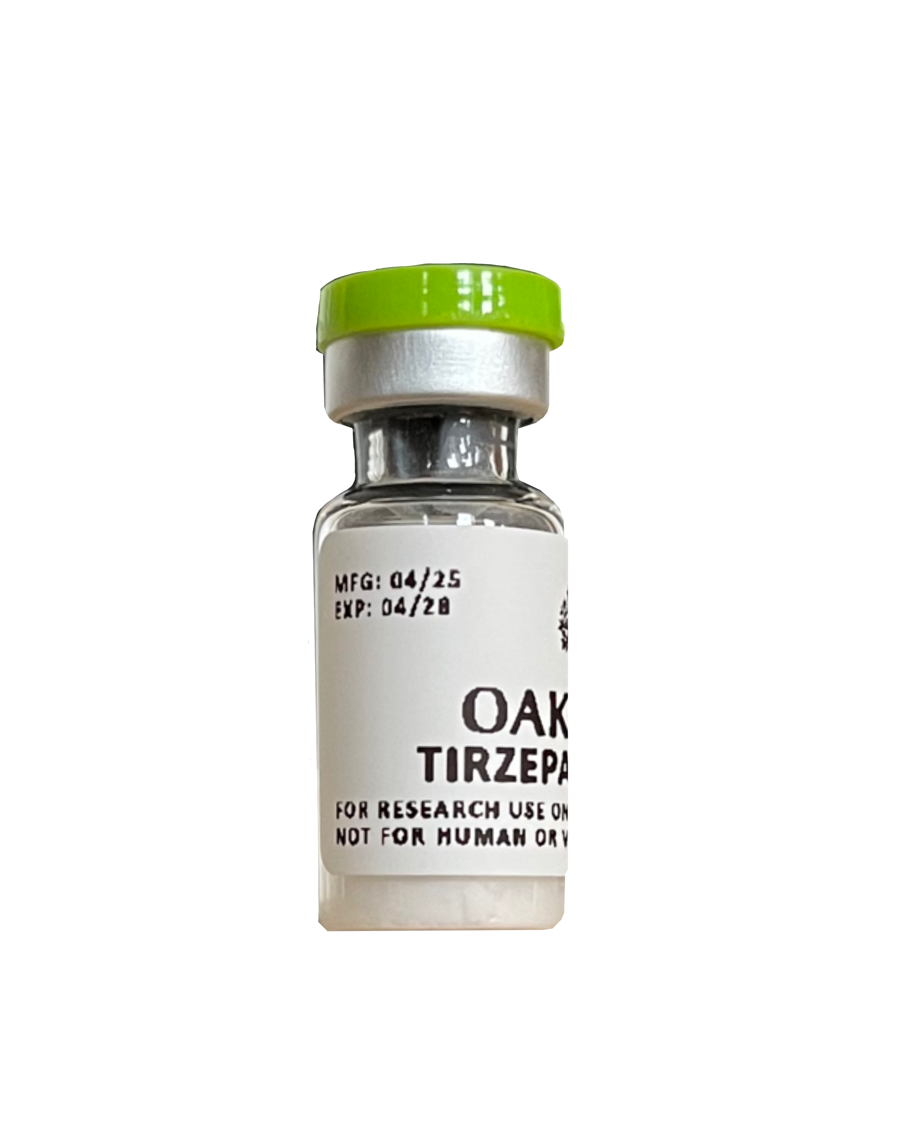 1x Tirz vial containing a 50mg lyophilized peptide puck.